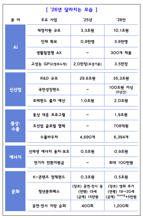 정부는 이러한 분야에 대한 투자를 통해 관련 산업을 육성하고 국가 경쟁력을 높이는 것을 목표로 하고 있습니다.