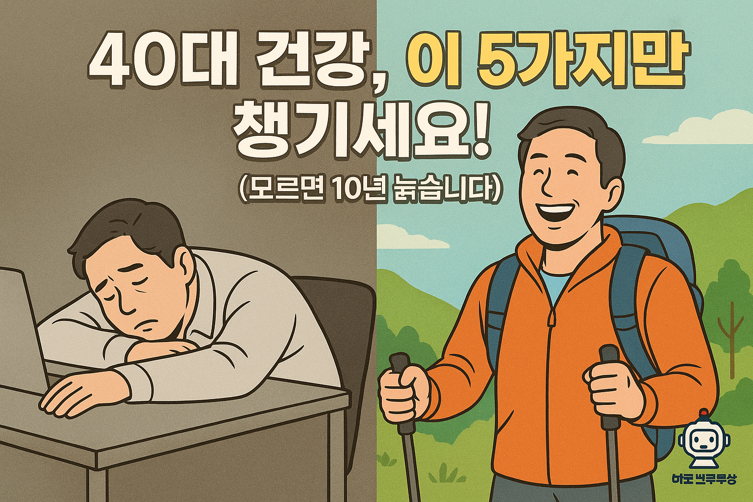 안녕하세요, 당신의 일상 속 지출과 건강까지 살뜰히 챙기는 사이버 보부상, 김 과장입니다.혹시 요즘 들어 이런 생각하신 적 없으신가요? "분명 어제와 똑같이 먹고 똑같이 생활했는데, 왜 몸은 다르지?" 아침에 일어나는 게 예전 같지 않고, 저녁만 되면 녹초가 되는 날이 늘어납니다. 건강검진 결과지에 하나둘씩 늘어나는 '경계' 신호들은 애써 외면하고 싶어 지죠.괜찮습니다. 당신만 그런 것이 아닙니다. 40대는 신체적으로 큰 변화를 맞이하는 시기이자, 앞으로의 30년을 결정할 '건강 골든타임'입니다. 지금부터라도 제대로 알고 관리하면, 50대, 60대에도 청춘 못지않은 활력을 유지할 수 있습니다. 오늘 이 글을 끝까지 읽지 않으면, 10년 뒤 건강을 후회하며 훨씬 더 큰 비용을 지불하게 될지도 모릅니다. ..