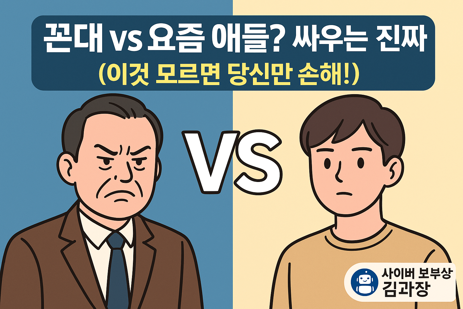 안녕하세요, 당신의 자산을 지키는 든든한 파트너, 사이버 보부상 김 과장입니다.혹시 요즘 후배들과 대화할 때 나도 모르게 ‘라떼는 말이야…’를 시전하고 있지는 않으신가요? 좋은 의도로 건넨 조언이 ‘꼰대질’로 오해받고, 세련된 X세대로 남고 싶었지만 어느새 멀어진 세대 차이에 서운함을 느낀 적은 없으신가요?모르고 지나치면 당신의 평판만 손해입니다. ‘영포티(Young Forty)’와 ‘꼰대’는 종이 한 장 차이거든요. 오늘 이 글을 끝까지 읽으신다면, 당신을 ‘꼰대’가 아닌 함께 일하고 싶은 ‘멋진 중년’으로 만들어 줄 결정적인 비법을 확실하게 얻어 가실 겁니다. ‘영포티’와 ‘꼰대’, 우리의 위치는 어디쯤일까?이것만은 피하자! ‘꼰대’ 자가진단 체크리스트센스 있는 ‘멋진 중년’의 3가지 대화법‘영..
